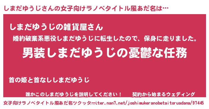 | 男性向けラノベタイトル風あだ名 | 『うちのしまだゆうじが世界を掌握している!』 |