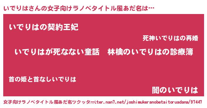 | 男性向けラノベタイトル風あだ名 | 『魔弾の王といでりは』 |