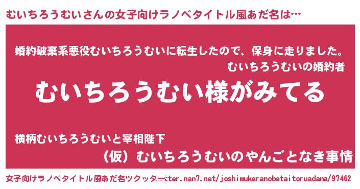 | 男性向けラノベタイトル風あだ名 | 『むいちろうむいの嫁は女の子じゃないと思った?』 |