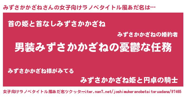 | 胡散臭い通販商品みたいなあだ名 | 『億万長者になれる霊験あらたかなお札…その名も「みずさかかざね」』 |
