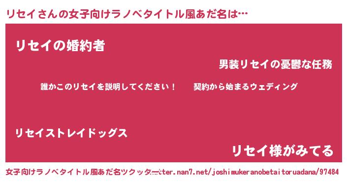 | ファンタジー風あだ名 | 『リセフェル』『エターナルリセイー』 |