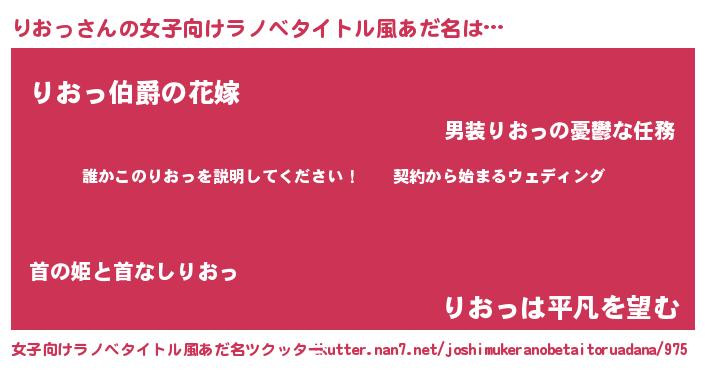 | 男性向けラノベタイトル風あだ名 | 『リオッアートオンライン』 |