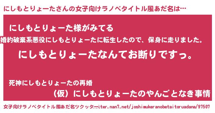 | 男性向けラノベタイトル風あだ名 | 『魔法科高校のにしもとりょーた』 |