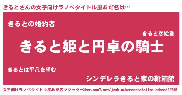 | 男性向けラノベタイトル風あだ名 | 『きるとの憂鬱』『緋弾のキルト』 |