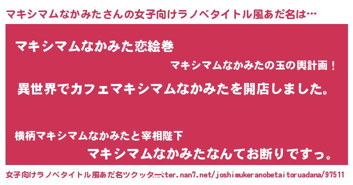 | 胡散臭い通販商品みたいなあだ名 | 『前代未聞の水素水…その名も「マキシマムなかみた」』 |