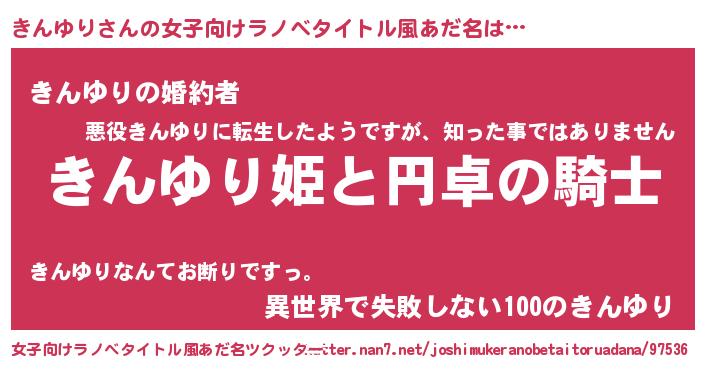 | 男性向けラノベタイトル風あだ名 | 『きんゆりの憂鬱』 |
