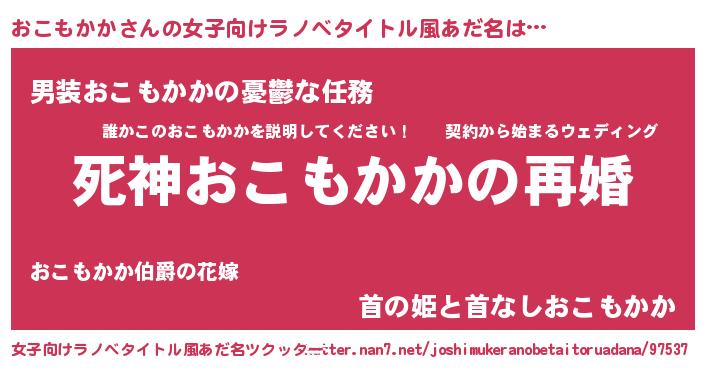 | 男性向けラノベタイトル風あだ名 | 『ノーゲーム・ノーオコモカカ』 |