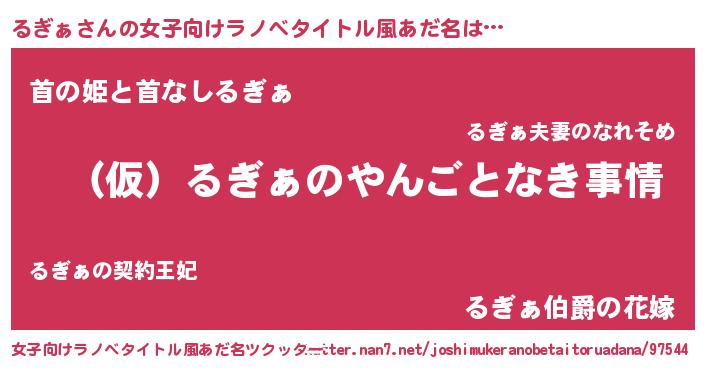 | 胡散臭い通販商品みたいなあだ名 | 『必ず成功する水晶球…その名も「るぎぁ」』 |