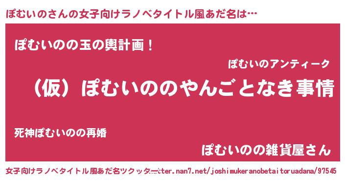 | 男性向けラノベタイトル風あだ名 | 『ぽむいのの憂鬱』 |