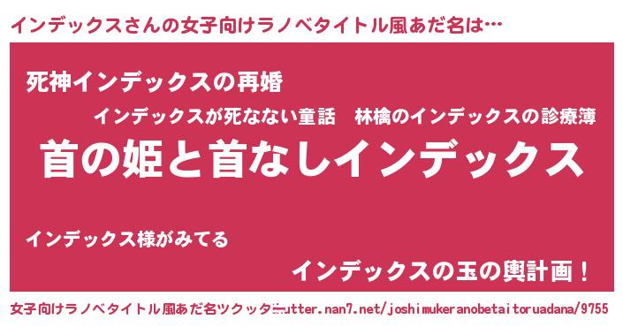 | ヒーロー風カッコイイあだ名 | 『愛の使者インデックス』『仮面インダー』 |