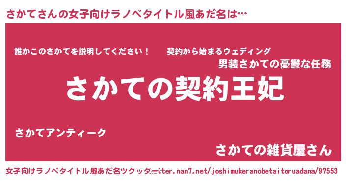 | ヘコむあだ名 | 『さかて(笑)』『さかにゅー』 |