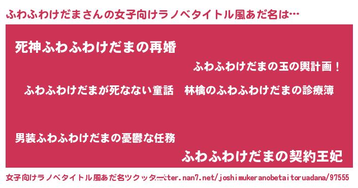 | ヘコむあだ名 | 『ふわふわけだま(小並感)』『ふわにー』 |