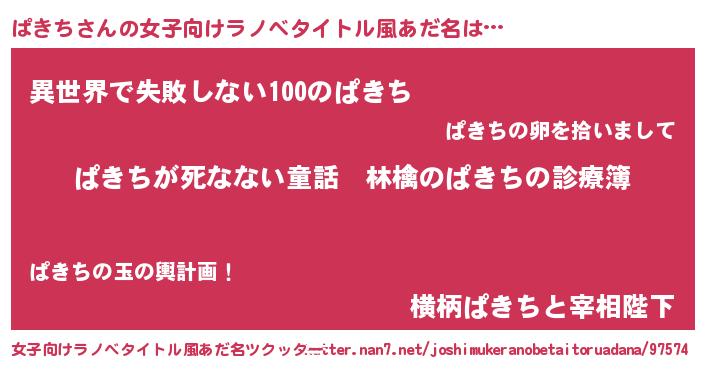 | ヘコむあだ名 | 『ぱきち(遠い目)』『ぱきを』『牛乳』 |