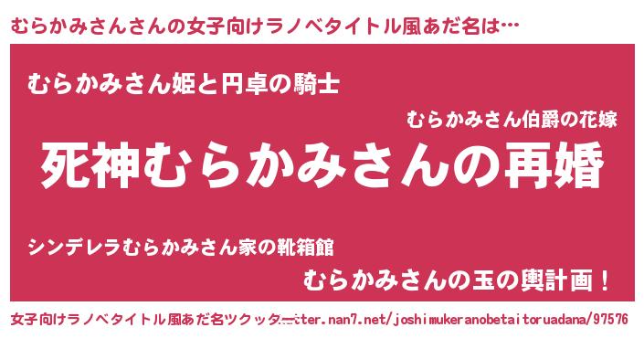 | 男性向けラノベタイトル風あだ名 | 『ノーゲーム・ノームラカミサン』 |