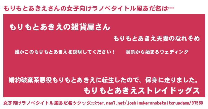 | 男性向けラノベタイトル風あだ名 | 『モリモトアキエアートオンライン』 |