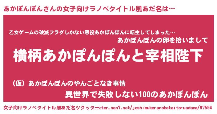 | 意味不明あだ名 | 『住所不定無職あかぽんぽん(8歳)』 |
