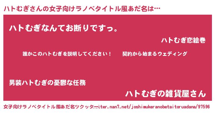 | 男性向けラノベタイトル風あだ名 | 『ハトムギアートオンライン』 |