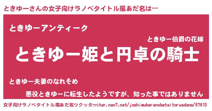 | 男性向けラノベタイトル風あだ名 | 『ときゆーの憂鬱』 |