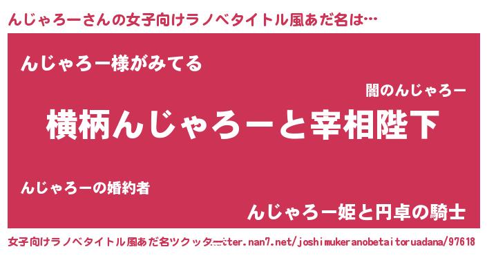 | 男性向けラノベタイトル風あだ名 | 『んじゃろーに滅ぼされるだけの簡単なお仕事です』 |