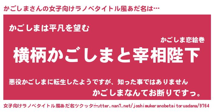 | 男性向けラノベタイトル風あだ名 | 『かごしまに滅ぼされるだけの簡単なお仕事です』 |