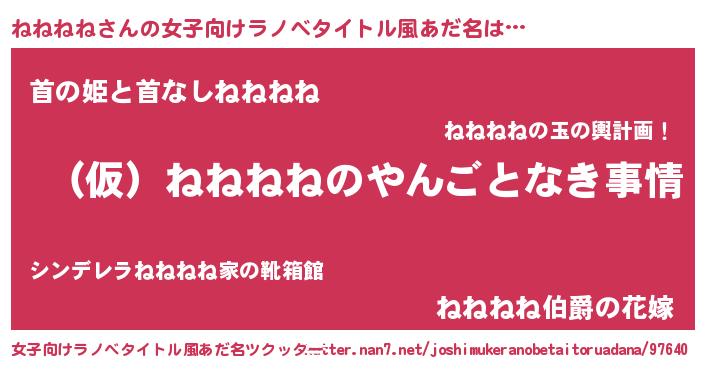 | 胡散臭い通販商品みたいなあだ名 | 『必ず成功するブレスレット…その名も「ねねねね」』 |