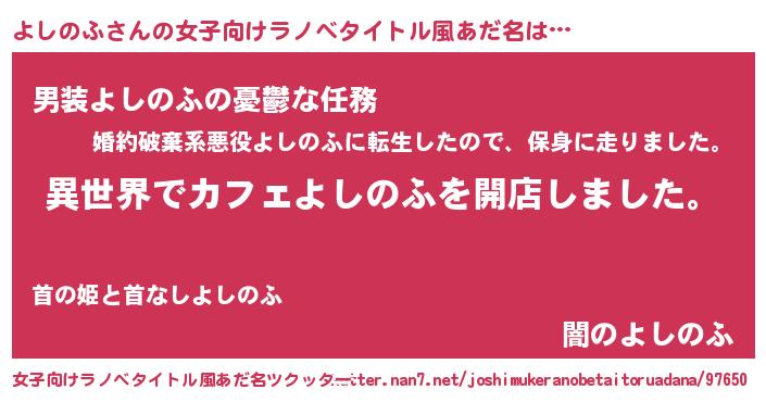 | 男性向けラノベタイトル風あだ名 | 『誰もが恐れるあのよしのふが、ぼくの専属メイドになるようです。』 |