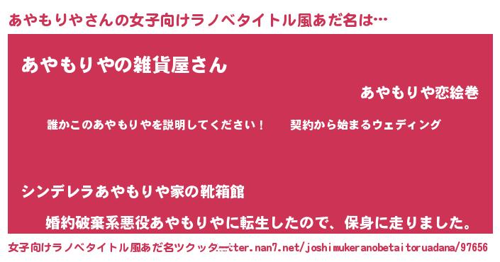 | 男性向けラノベタイトル風あだ名 | 『アヤモリヤアートオンライン』 |