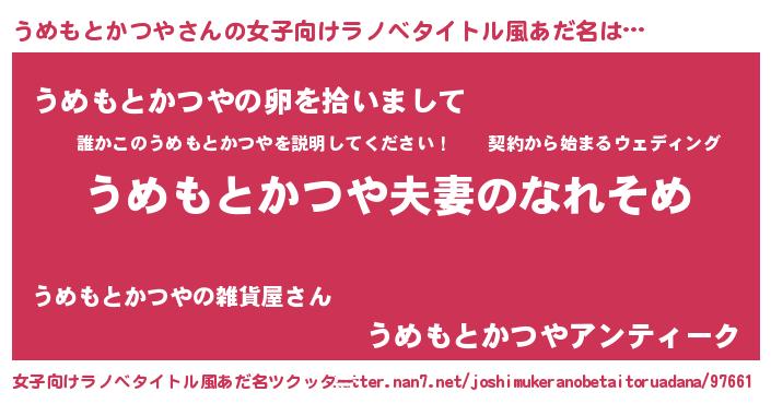 | ヒーロー風カッコイイあだ名 | 『友情の使者うめもとかつや』 |