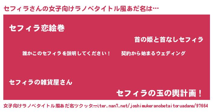 | 男性向けラノベタイトル風あだ名 | 『セフィラアートオンライン』 |