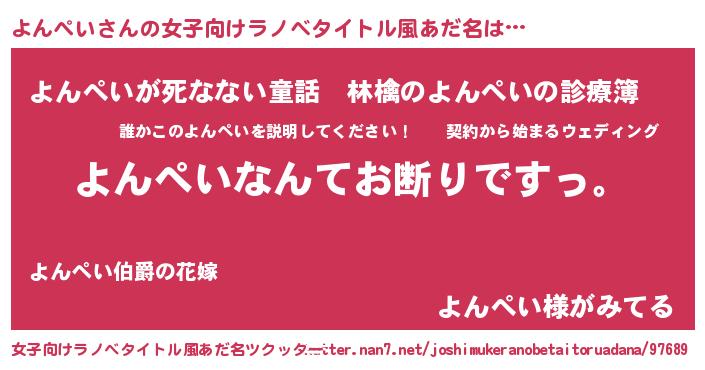 | 意味不明あだ名 | 『自称よんぺい』『ペロリンよんぺい』 |