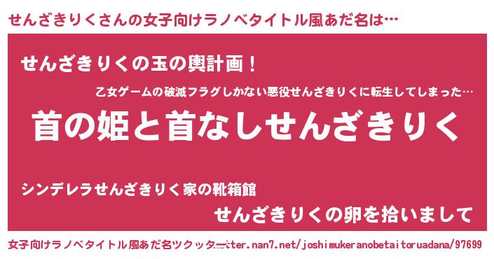 | 胡散臭い通販商品みたいなあだ名 | 『信頼と実績のサプリメント…その名も「せんざきりく」』 |