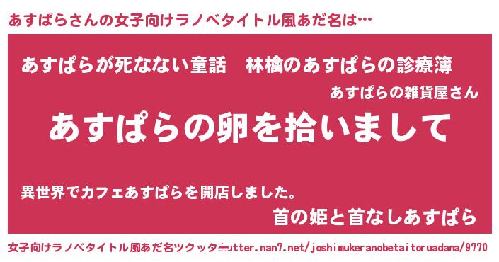 | 意味不明あだ名 | 『とにかく怪しいあすぱら』 |