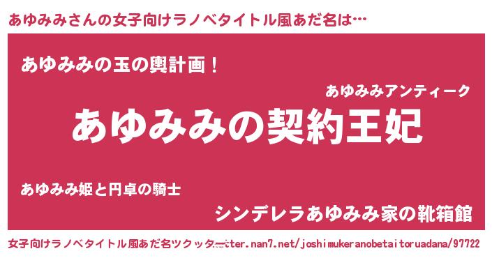 | ヘコむあだ名 | 『あゆみみ(小並感)』『あゆもー』 |