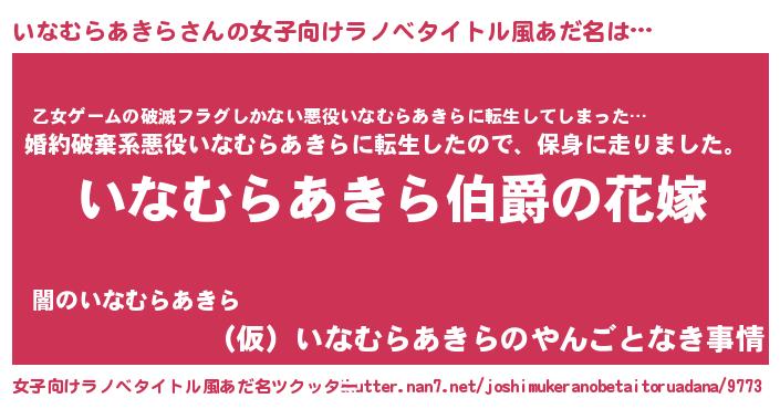 | 男性向けラノベタイトル風あだ名 | 『やはりいなむらあきらの青春ラブコメはまちがっている 』 |