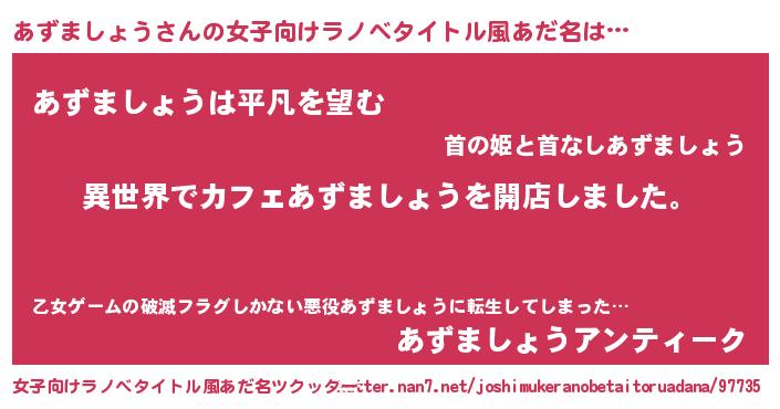 | 男性向けラノベタイトル風あだ名 | 『誰もが恐れるあのあずましょうが、ぼくの専属メイドになるようです。』 |