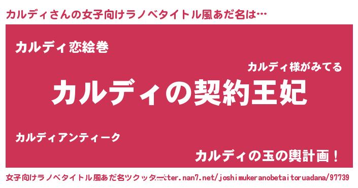 | 男性向けラノベタイトル風あだ名 | 『誰もが恐れるあのカルディが、ぼくの専属メイドになるようです。』 |