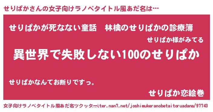 | ヘコむあだ名 | 『せりぱか(笑)』『せりお』『牛乳』 |