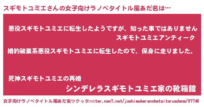 | 男性向けラノベタイトル風あだ名 | 『スギモトユミエスレイヤー』 |