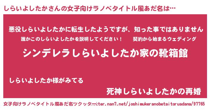 | 胡散臭い通販商品みたいなあだ名 | 『世界中を虜にした100年もののヴィンテージワイン…その名も「しらいよしたか」』 |