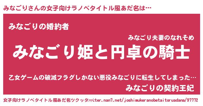 | 男性向けラノベタイトル風あだ名 | 『みなごりの憂鬱』 |
