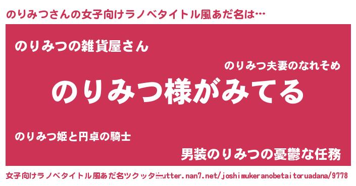 | 男性向けラノベタイトル風あだ名 | 『のりみつの嫁は女の子じゃないと思った?』 |