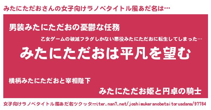 | ヒーロー風カッコイイあだ名 | 『暗黒騎士ミタ』『スーパーミタニタダオ』 |