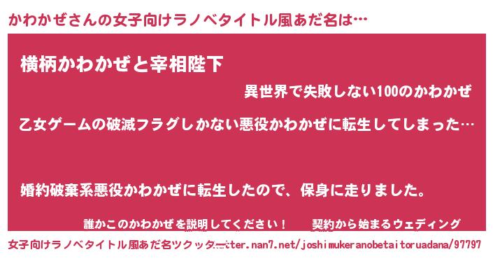 | 男性向けラノベタイトル風あだ名 | 『魔弾の王とかわかぜ』 |