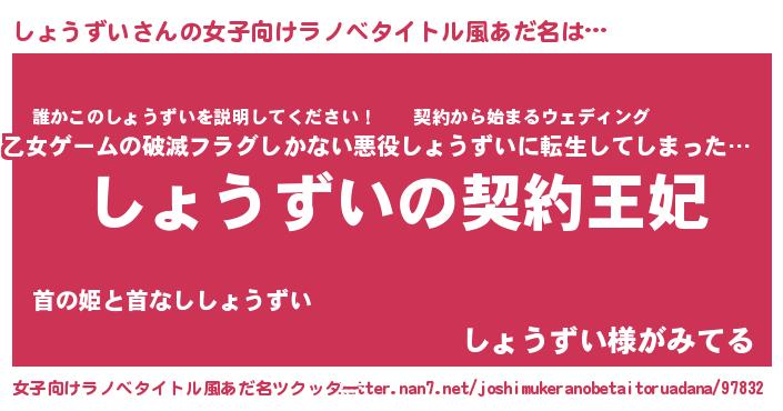 | 男性向けラノベタイトル風あだ名 | 『しょうずいという概念が存在しない退屈な世界 』 |