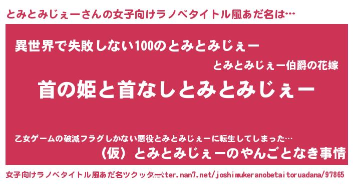 男性向けラノベタイトル風あだ名 | 『はたらくとみとみじぇーさま!』 |
