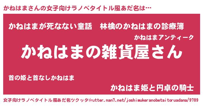 | 男性向けラノベタイトル風あだ名 | 『やはりかねはまの青春ラブコメはまちがっている 』 |