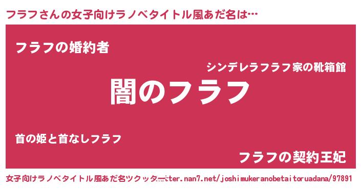 | 男性向けラノベタイトル風あだ名 | 『Re:フラフから始める異世界生活』 |