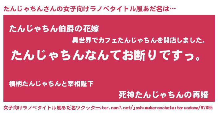 | 男性向けラノベタイトル風あだ名 | 『魔法科高校のたんじゃちん』 |