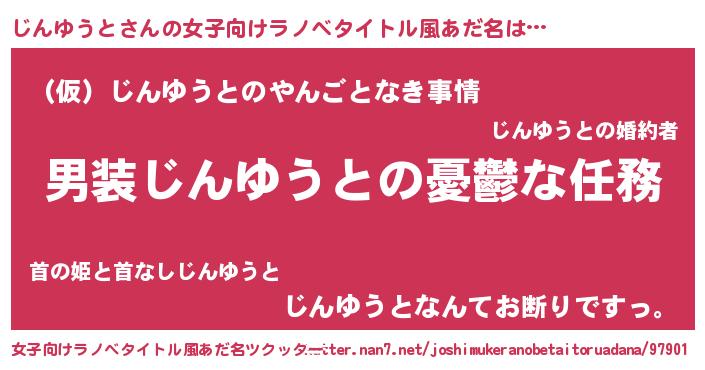 | 男性向けラノベタイトル風あだ名 | 『うちのじんゆうとが世界を掌握している!』 |