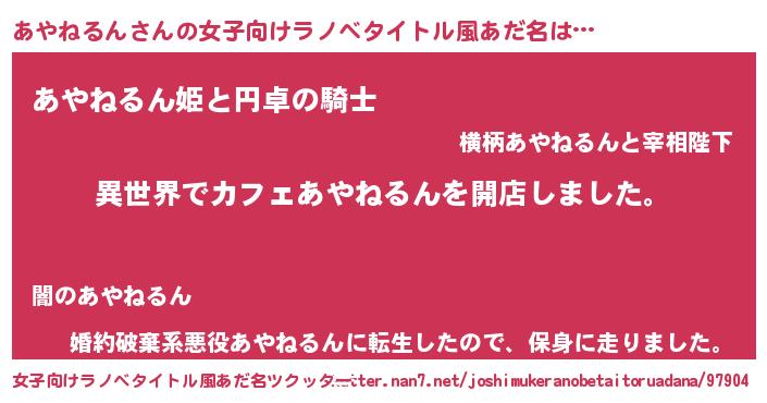 | 男性向けラノベタイトル風あだ名 | 『誰もが恐れるあのあやねるんが、ぼくの専属メイドになるようです。』 |